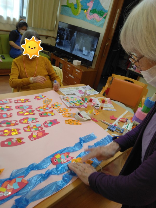 5月に入ってから、突貫工事でこいのぼりの壁飾りを作りました!!