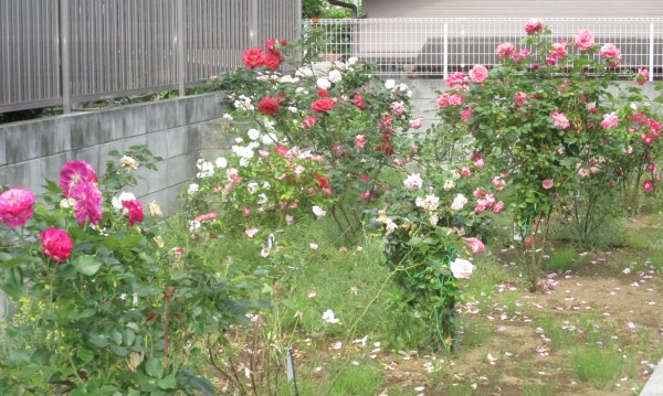 五月になって、庭のバラがみるみる大きくなって、綺麗な花を咲かせました。
