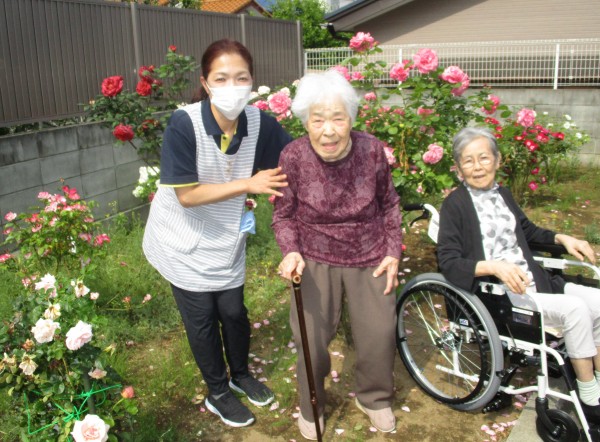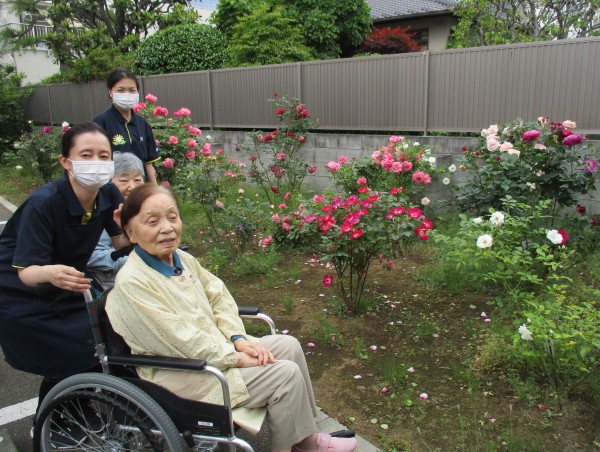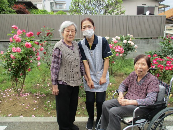 窓から眺めていたバラを近くで見られて、笑顔とお話が弾んだ楽しい時間でした。
