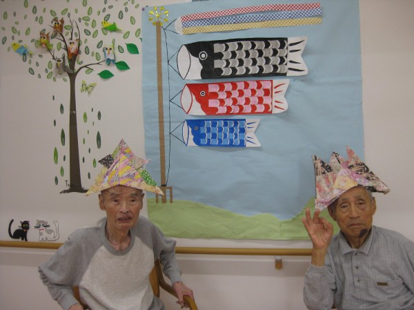 1階で端午の節句に兜を被り写真撮影しました( ^ω^)・・・ 綺麗に撮れましたか? まあまあかな?とお喋りしました(*^_^*)