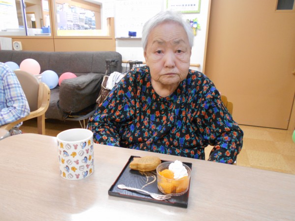 おやつはミニたい焼き、みかんにホイップクリームをトッピングしたものなど提供させていただきました♪