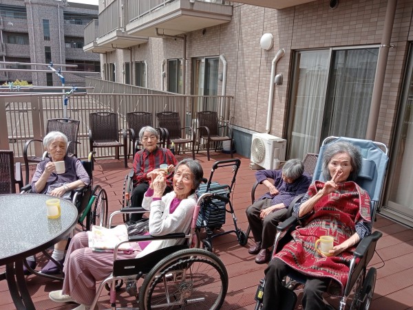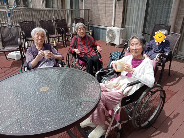 2階のマダムたちは外気浴をしております❣