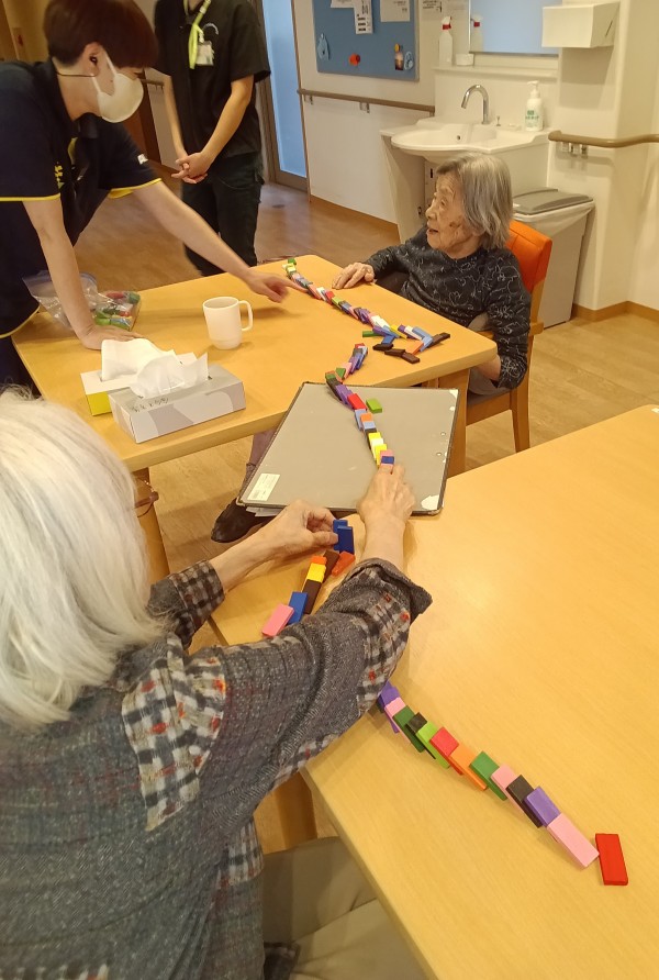 レクリエーションにて`'ドミノ倒し`'をやっている様子になります(*^^)v