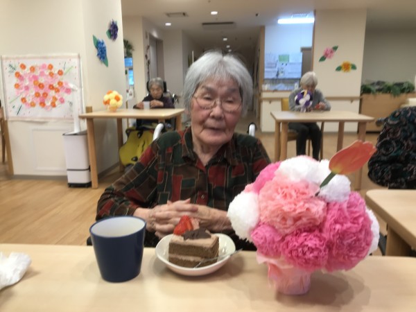ケーキも「美味しいわね~」と喜んで下さる方が沢山居て職員もとっても嬉しい気持ちになれる素敵なイベントでした♬