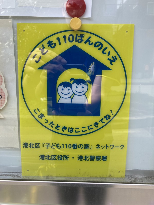 『子ども110番の家』は、子どもが被害者となる事件を未然に防止するとともに、 大人が子どもを暖かく見守り、健全な育成を図る地域環境づくりの一環として、民 家や商店、事業所等の協力を得て、緊急避難場所とするものです(港北警察署抜粋)
