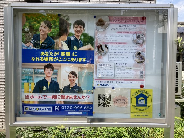 何もないのが一番ですが、この看板でALSOKの介護を知ってもらったり、地域の防犯の役にも立てていければとてもしあわせです。