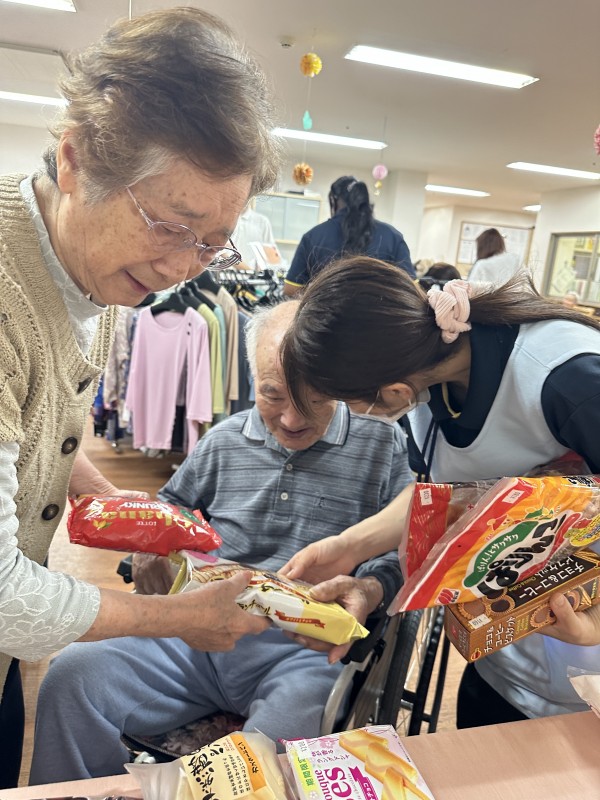 最初から最後まで選んでいる方もいれば、この色が好きと教えてくださったご利用者様、服は即決、でもお菓子選びに時間がかかる方・・・私たち職員も一緒に選んだり、アドバイスしたり、有意義な時間になりました☆☆
