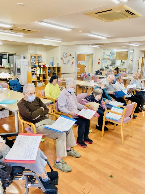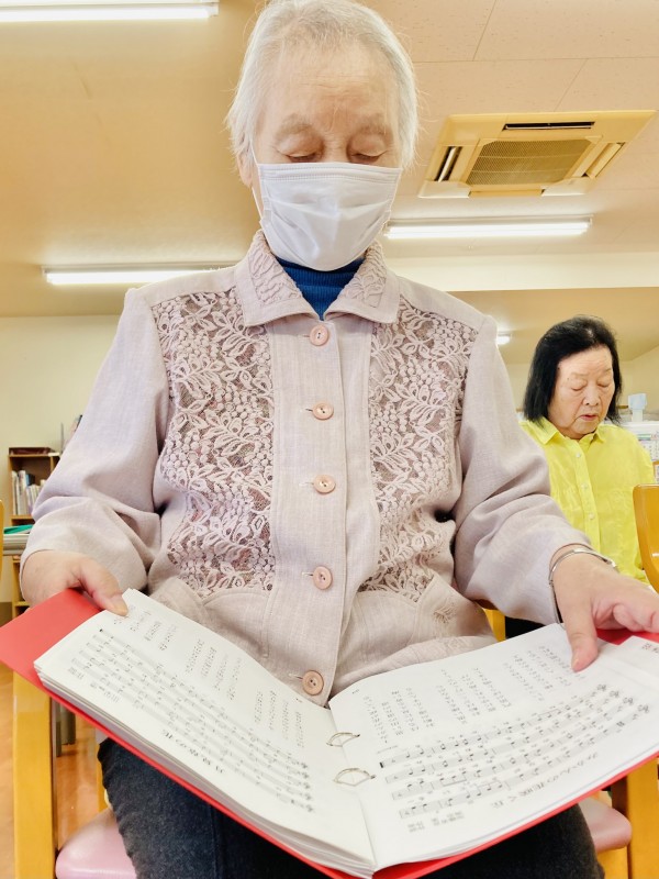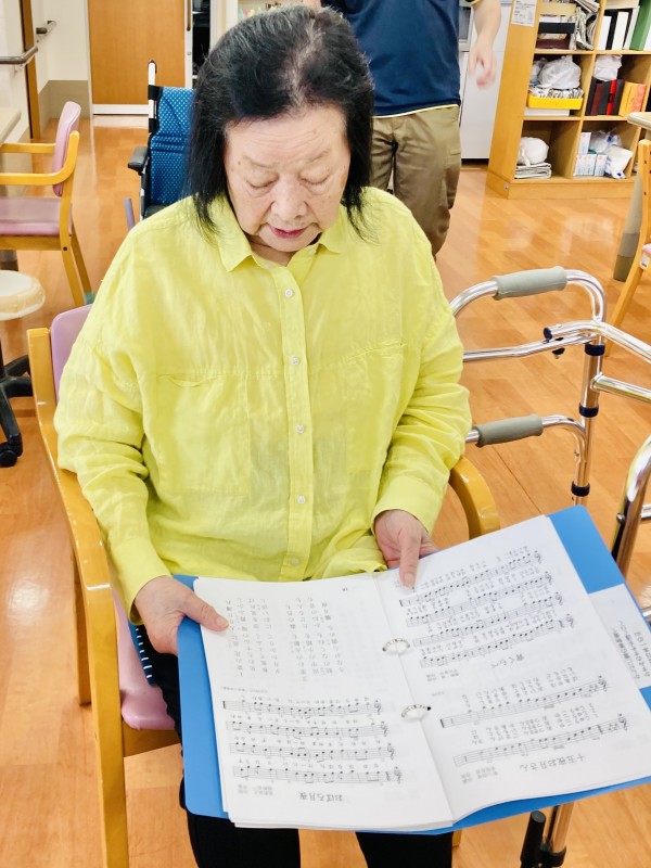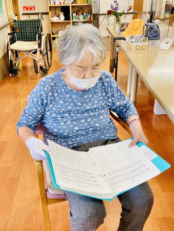 手でリズムを取りながら歌を歌っていました。1時間しっかり集中して取り組まれていました。