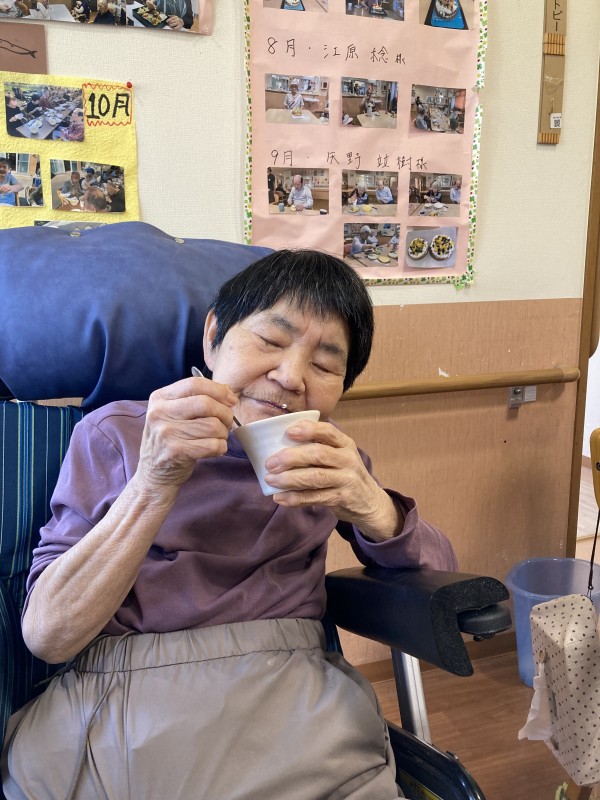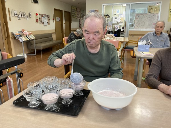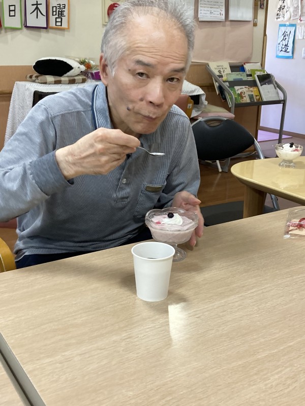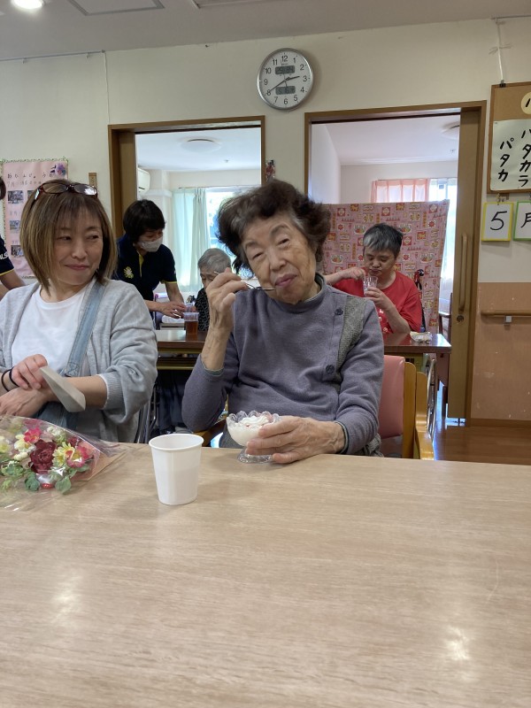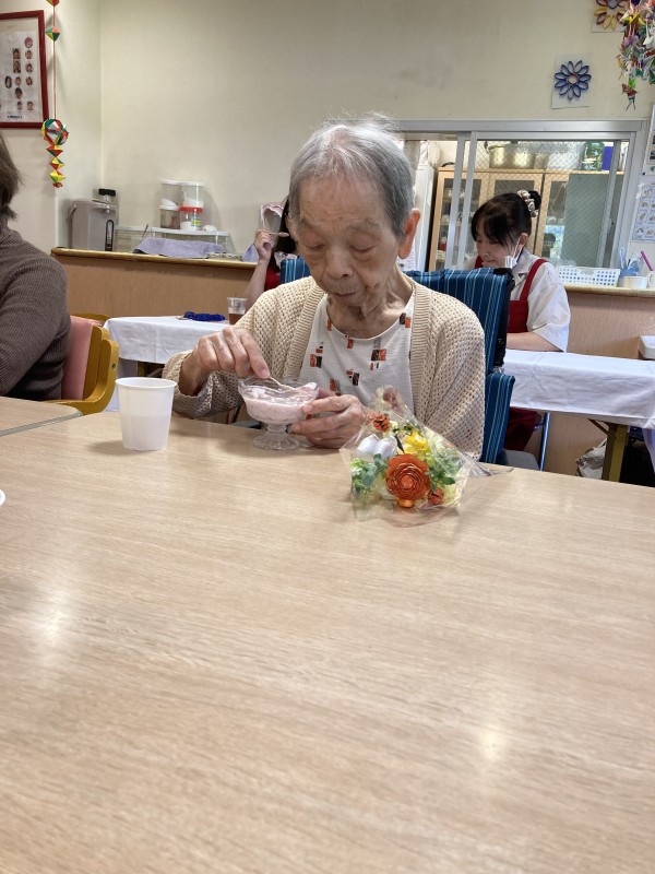出前の昼食を終え、フラワーアレンジメント作りを楽しまれた後デザートをいただきましたのでその様子を伝えていきたいと思います。