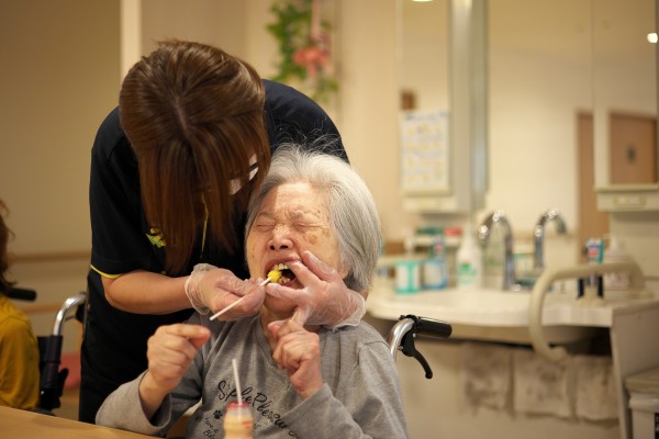 ある日の朝食後の歯磨き風景。
