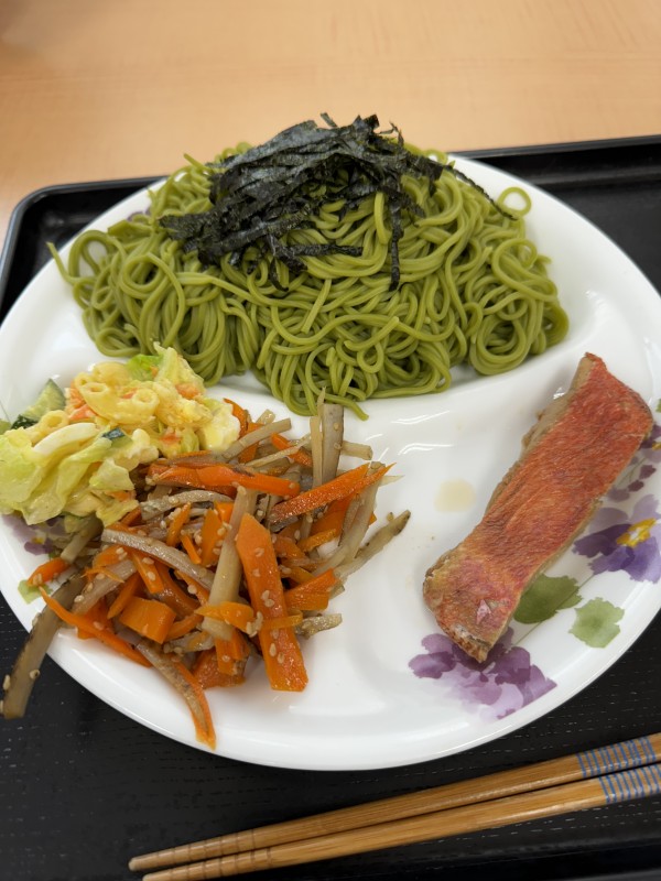 とても緑が綺麗なお茶で出来たお蕎麦です!