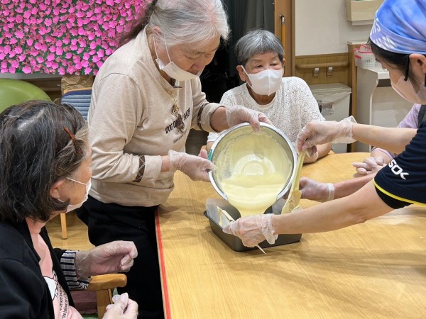 みなさん生地を混ぜながら「これで良いの?」「なんだかドキドキするわ」