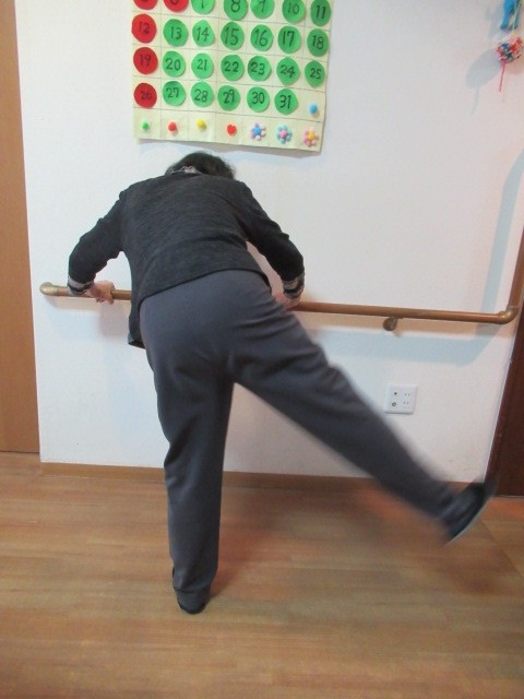 運動は、しっかりとバーを握って、