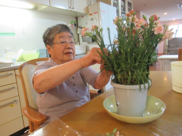 カーネーションのお世話も