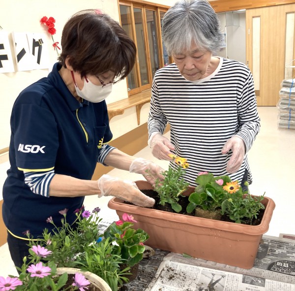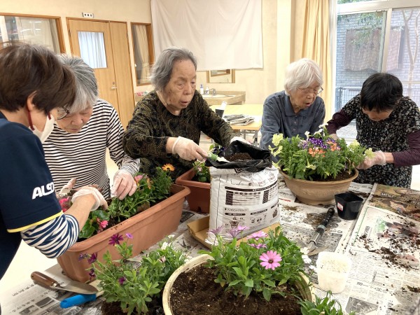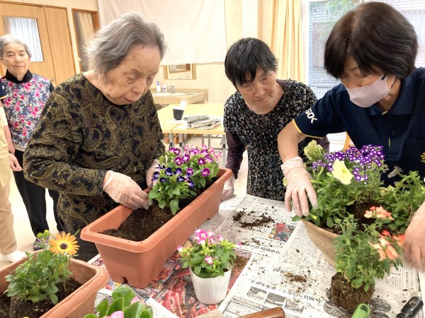 鉢とお花を選んで~。皆さん慣れたもので手際が良いです(^_^)v