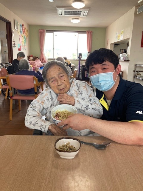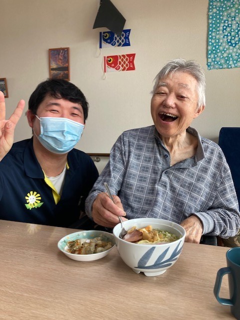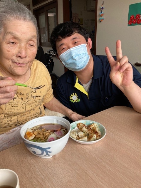 手作りのラーメンとホームの皆さんと一緒に作った餃子です!