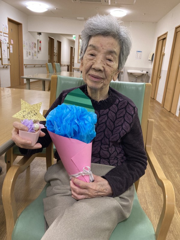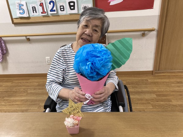 利用者様に本日が母の日であることを伝えプレゼントをお渡しすると笑顔を見せてくださり大変喜んでくださりました♪