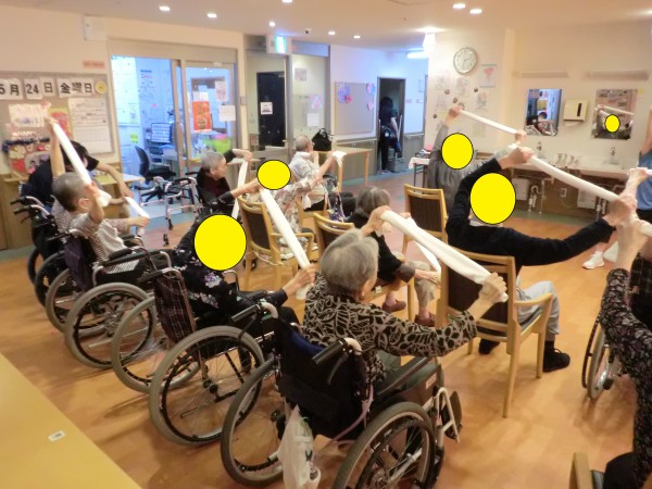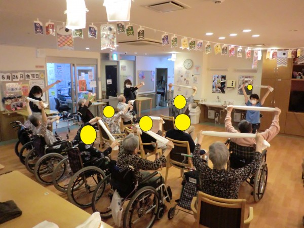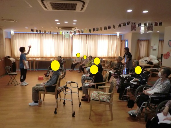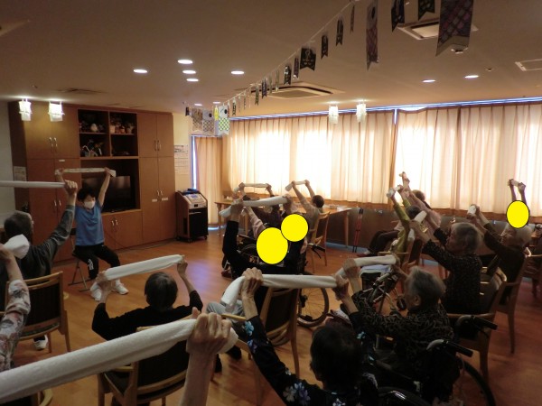 今回はタオルを使った体操の実施です。事前にチラシが配布されており地域の方でもご参加いただけるように手配されておりました。