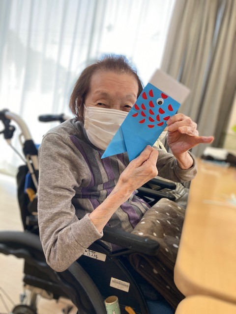 皆さ~ん、完成しました( ̄︶ ̄)↗  かわいい鯉のぼりですね~§(* ̄▽ ̄*)§ 現在、皆様に作って頂きました「鯉のぼり」を施設内で飾っております。ご来訪時には、是非ご覧いただけると幸いです\( ̄︶ ̄*\))