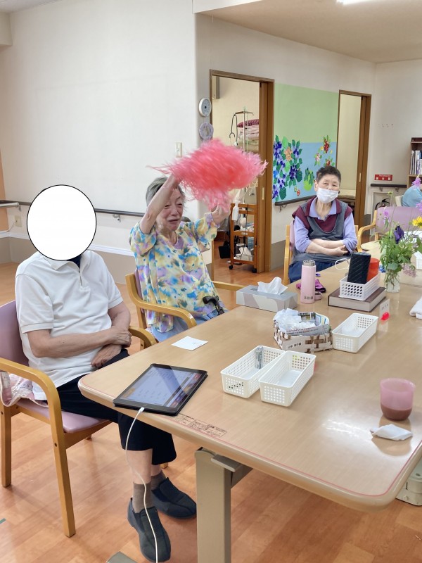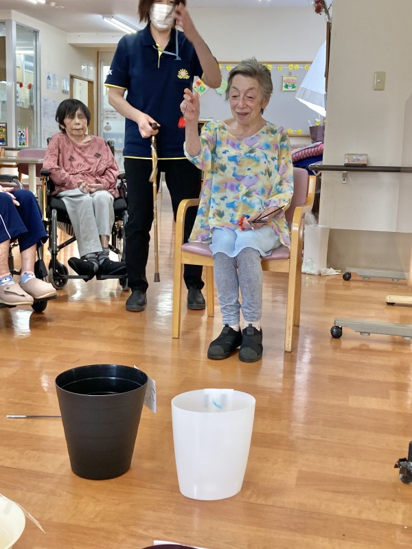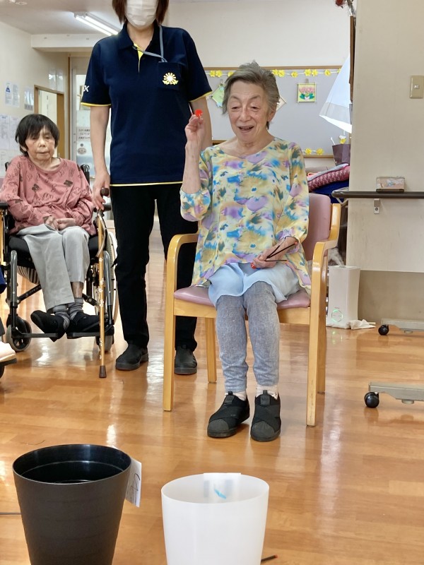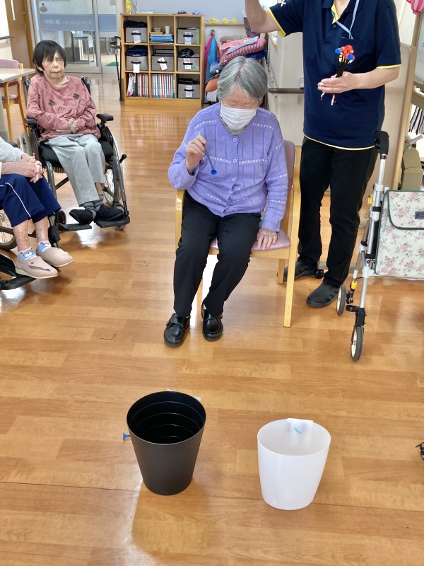 今日のレクは、投壺です。1人9投投げています。