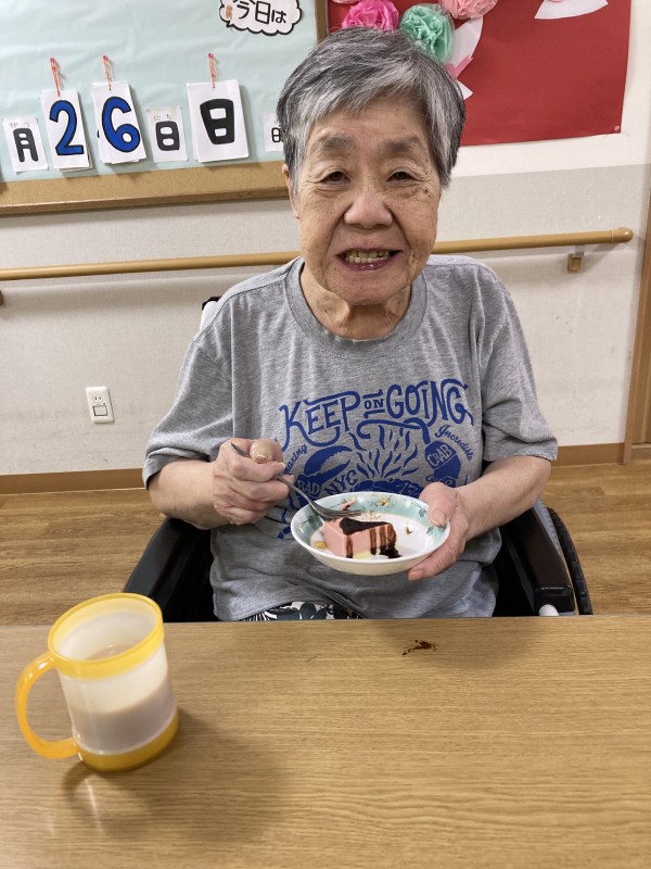 職員、ご利用者様でお誕生日ソングを歌い、お誕生日おめでとうございますの掛け声と一緒にお祝いしました♪