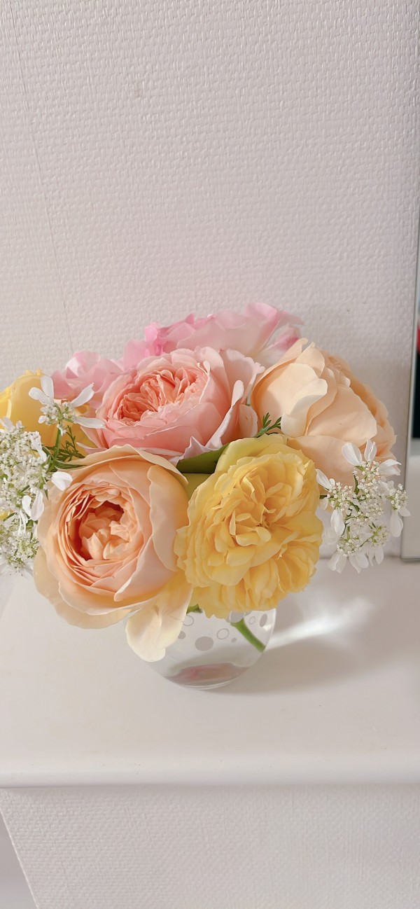 優しい色の花でまとめました。