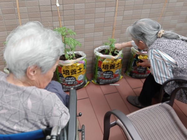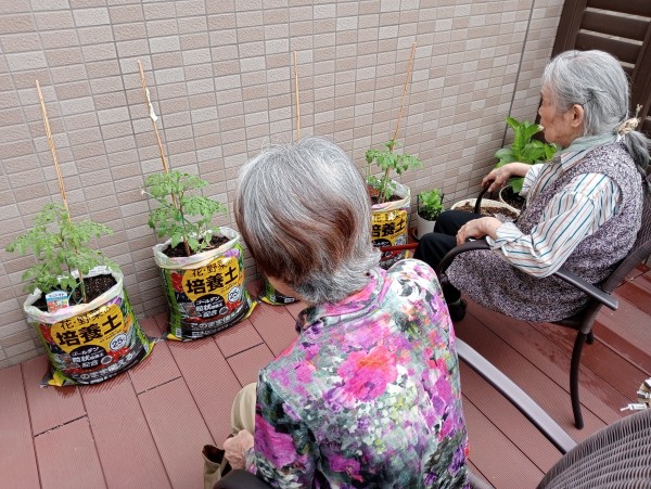 少しずつ大きくなっているトマトを観察しながらの外気浴は