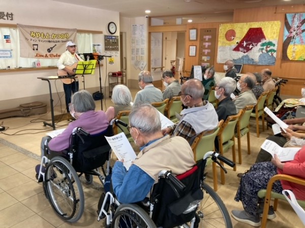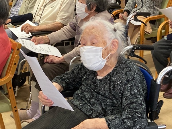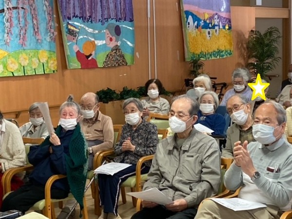 「四季の歌」「上を向いて歩こう」など、ギターの演奏に合わせて皆で歌いましたよ~♪