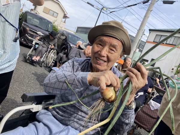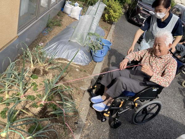 車いすの方は葉の根元に括り付けた紐を引っ張ってもらい収穫しました(^^)/