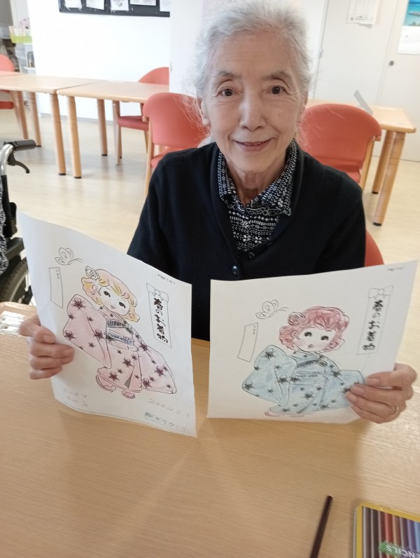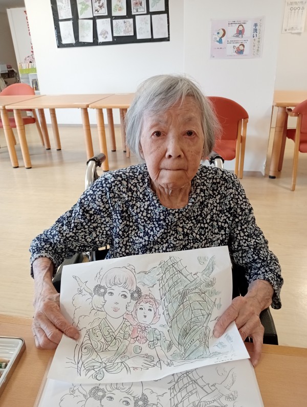 チームぬり絵の皆さまの作品と笑顔です(o^―^o)