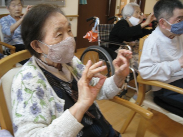 「指はこうやって動かすんだって」と隣の方と話しながら、