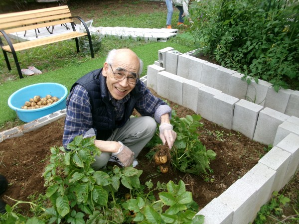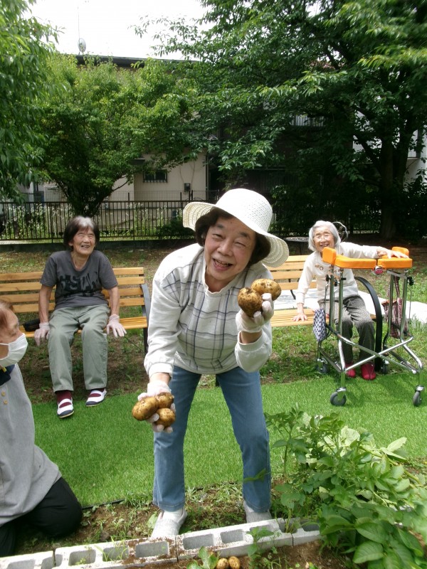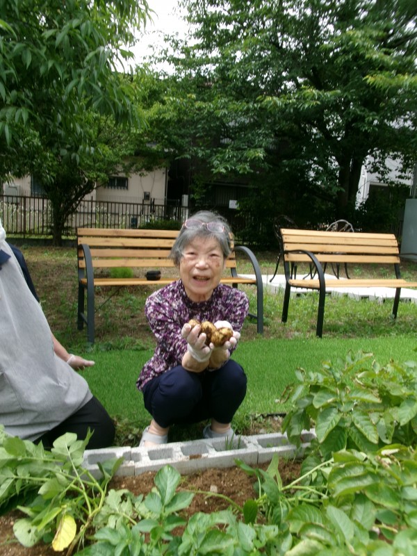 今回はジャガイモ。まずは、土から掘り起こして収穫していきます。