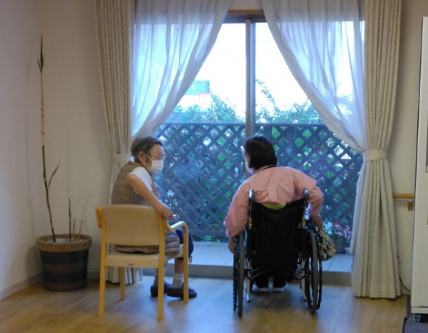 ベランダのお花を眺めつつ、窓辺で語り合っているお客様たちもいらっしゃいます。