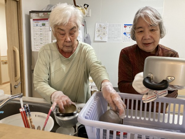 今日は女性入居者様達に、家事仕事を手伝って頂きました!