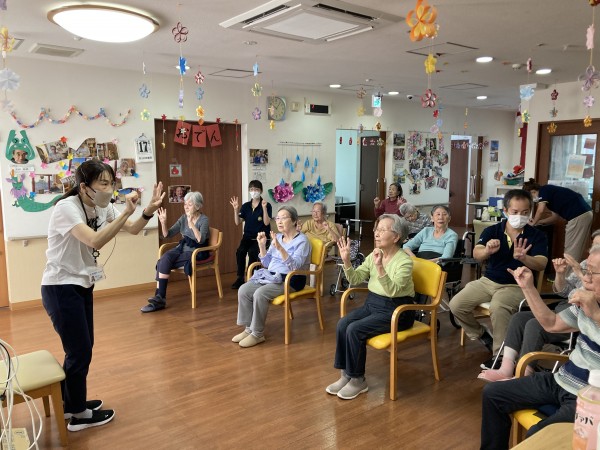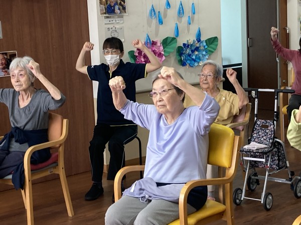 インストラクターの佐倉さんが、ホームに来てくれての体操の日です。