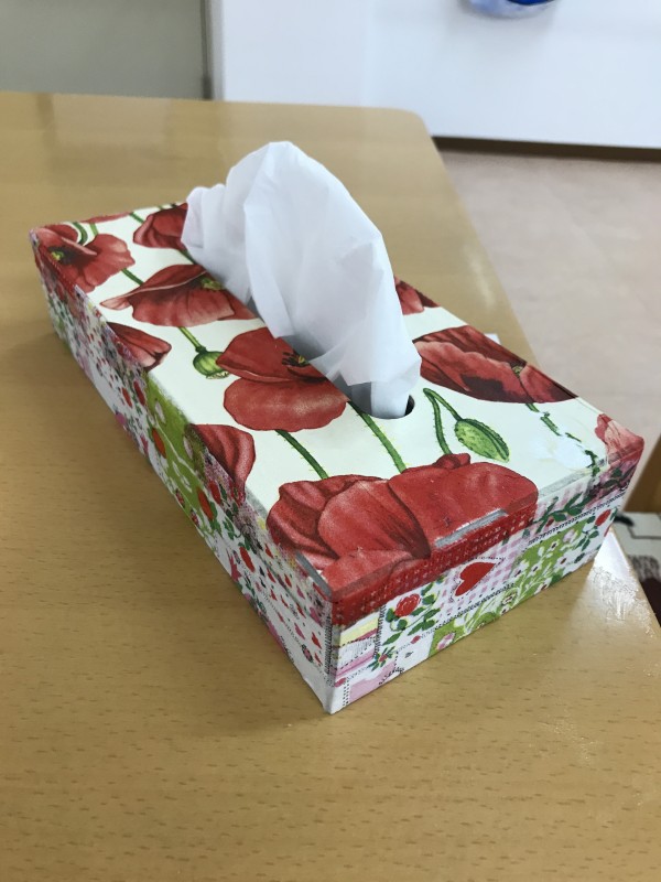そんなティッシュを華やかに彩るティッシュケースの作成を行いました。