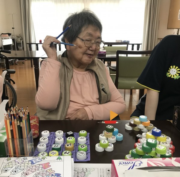 塗り絵に脳トレにいつも一生懸命