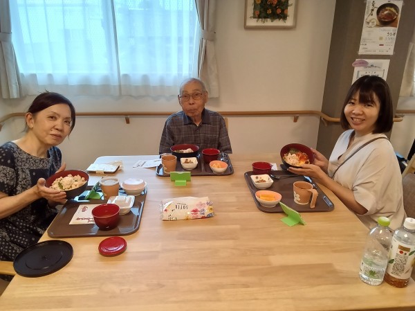こちらの新しく入居されたご利用者様も、ご家族の方と一緒に楽しく召し上がってらっしゃいますね♪♪