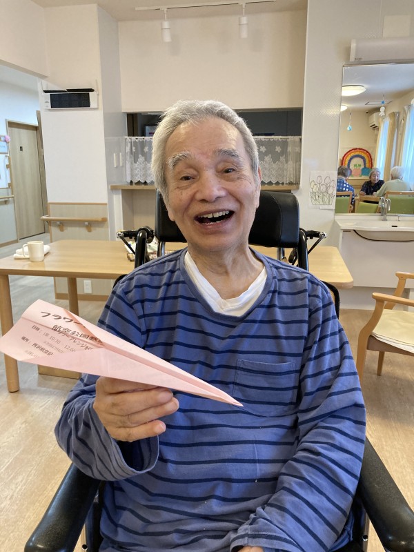 外気浴もできず入居者様達も少し退屈そうでしたので、みんなで紙飛行機大会を開催しました!