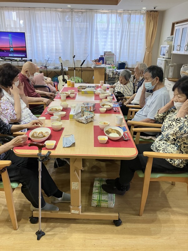 昼食は『ミルフィーユカツカレー』とおやつは『塩豆大福』