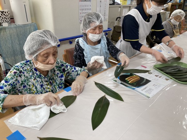 同時進行で笹の葉も用意して、笹船を作っていきます!