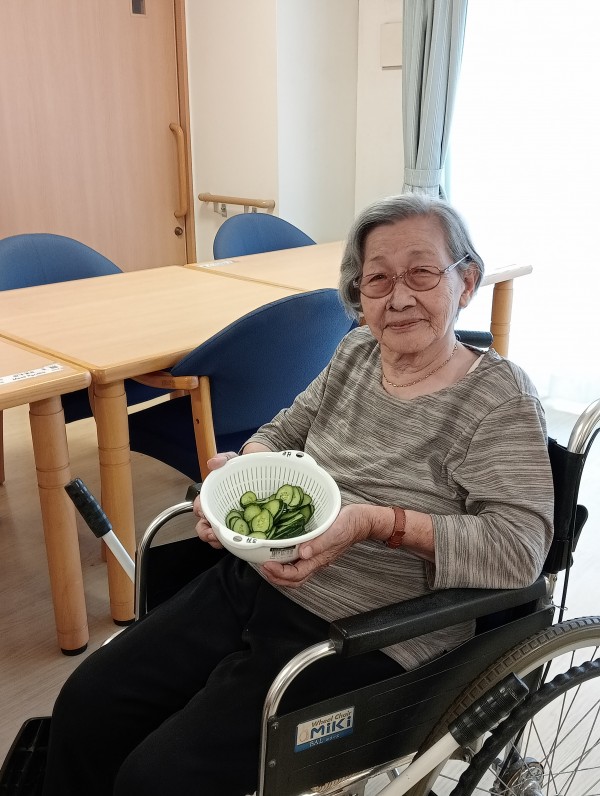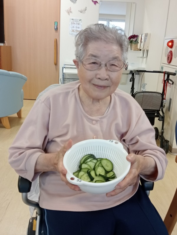 家庭菜園のキュウリを収穫して、塩漬けを作っていまぁす♪