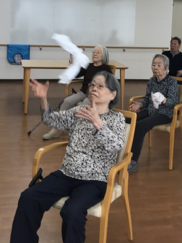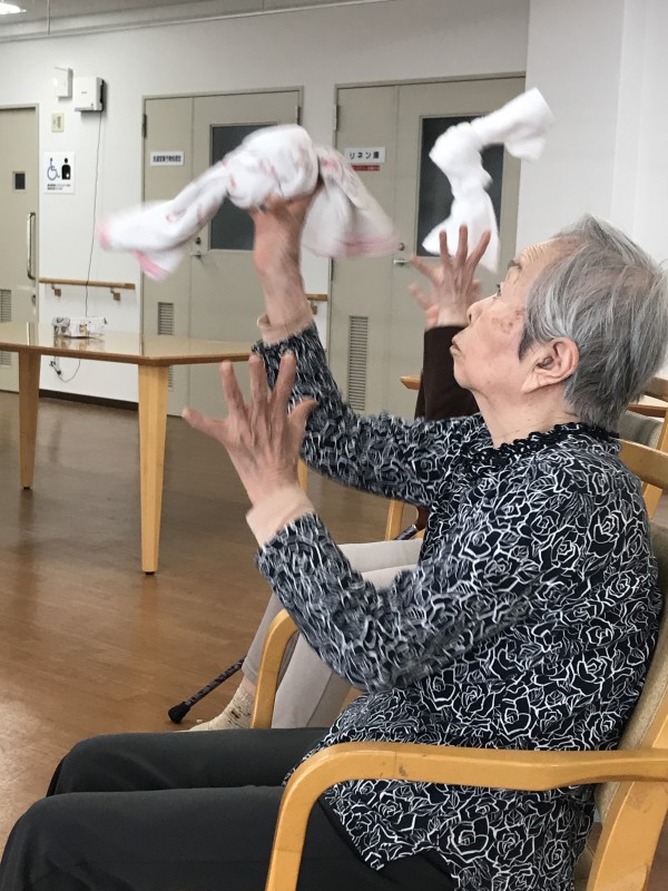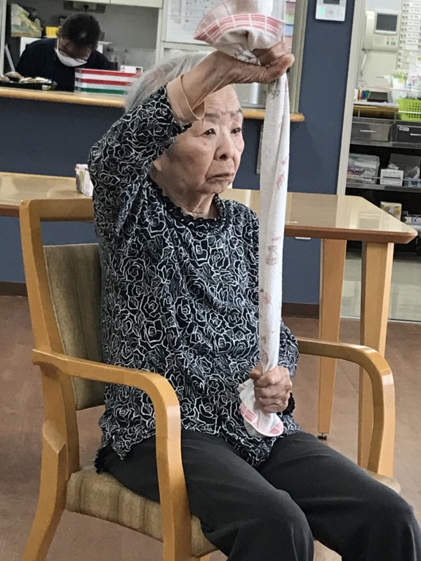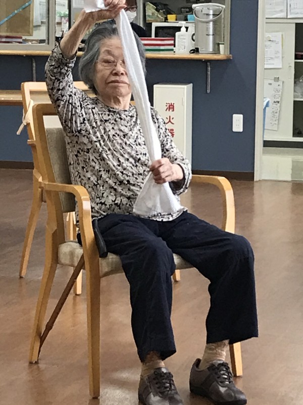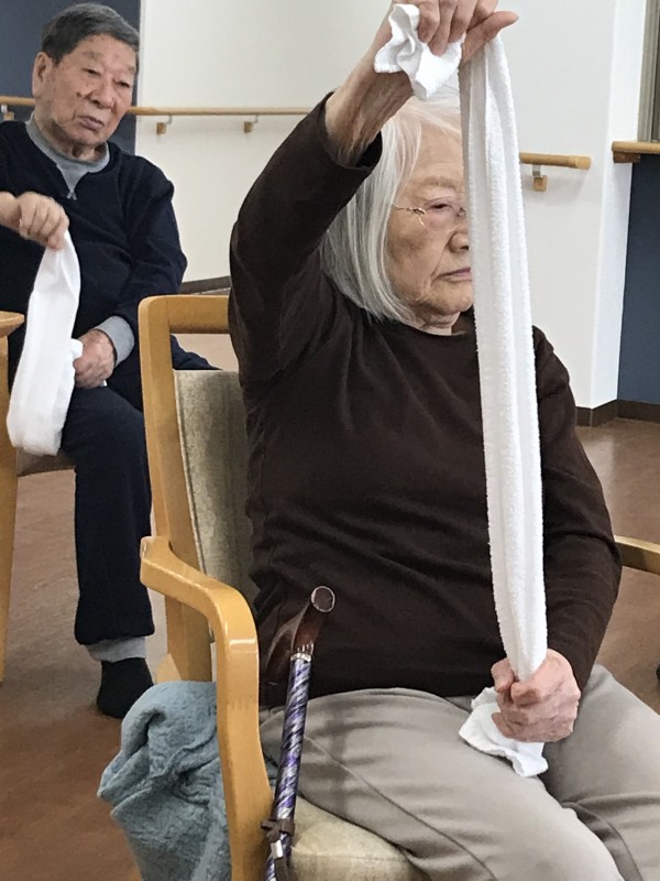 タオルを使った全身運動。いろんなところを動かしましょう
