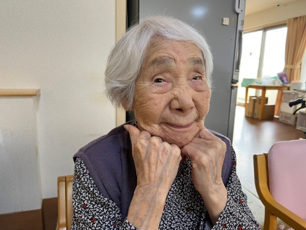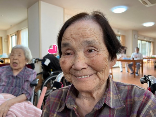 唾液腺のマッサージ中には、104歳様のキュートなスマイル