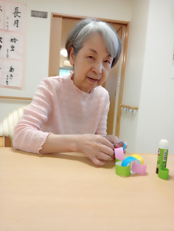 七夕の飾りを皆様と一緒に作り始めました
