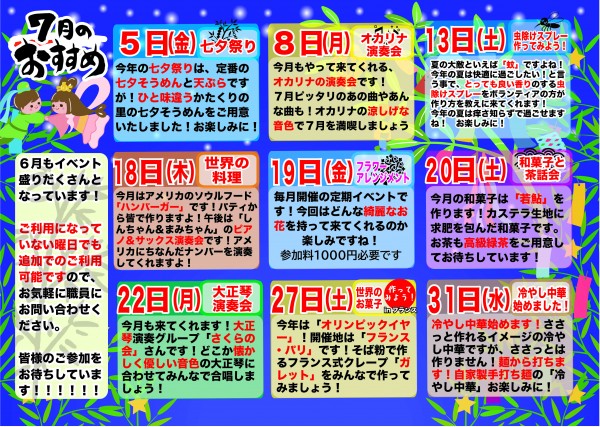 7月もお楽しみが目白押しですよ!