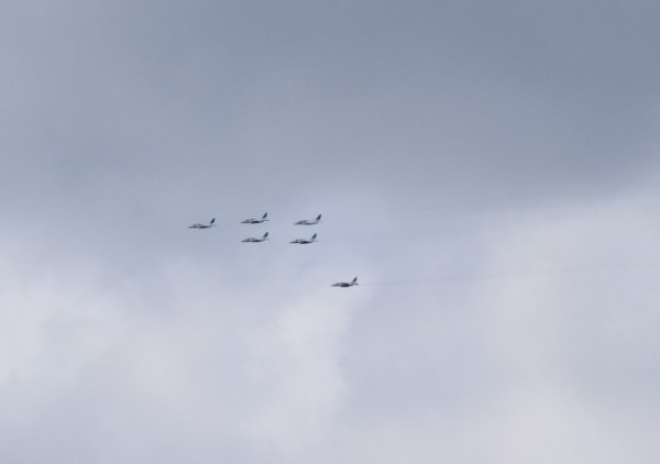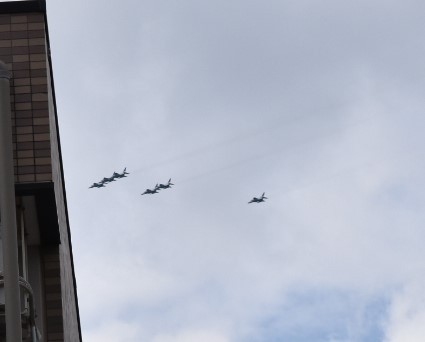 航空自衛隊のブルーインパルスが等々力緑地で展示飛行する往復で