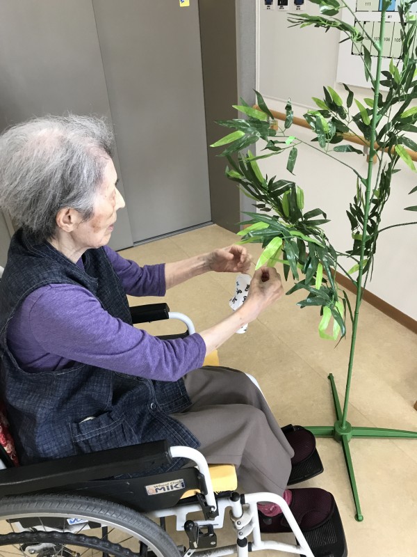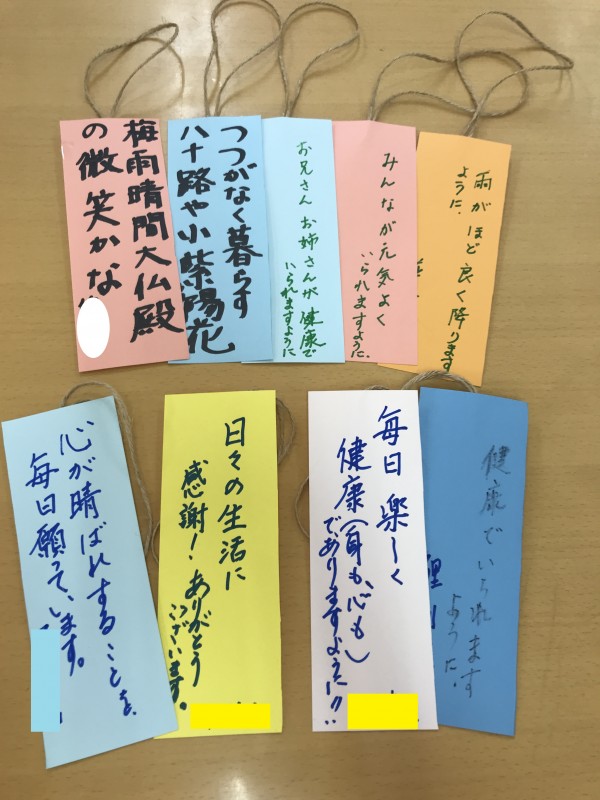 七夕の飾りつけを行いました。みなさんの願いはなんだろな?