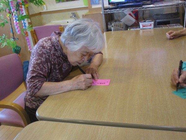 折り紙で飾りを作ったり、短冊に願い事を書いたり、ワイワイと楽しそうです(^^♪