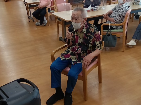 今日のレクリエーションはカラオケ大会でした。